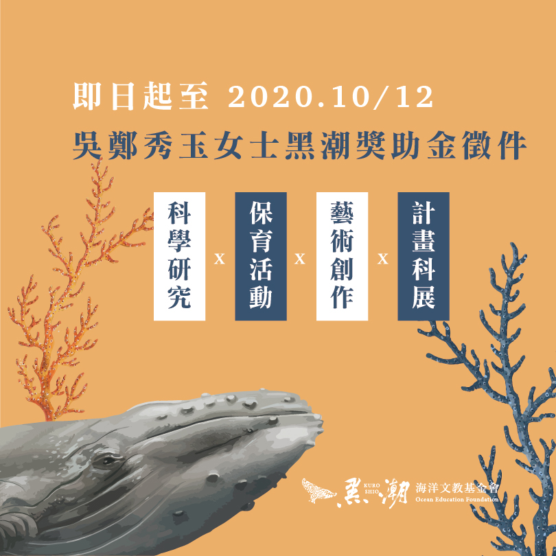 |活動名稱:與海共生—「2020第八屆吳鄭秀玉女士黑潮獎助金」徵件開始!