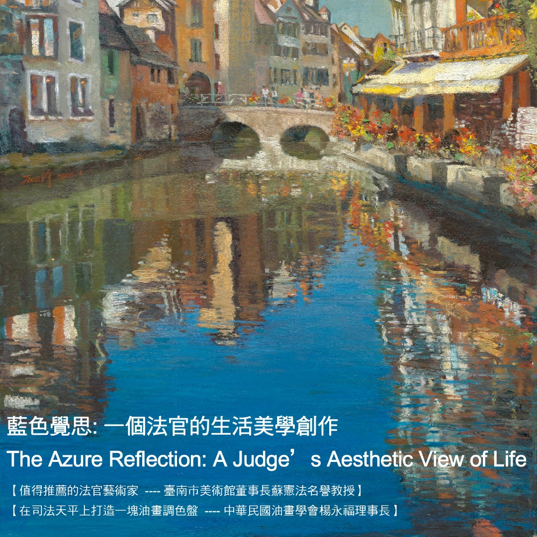畫作分《藍色覺思》與《綠色浪漫》兩個系列。前者,從職務體認,對司法制度問題的覺查、省思;後者則是對生活週遭真善美事物的體會、反饋。