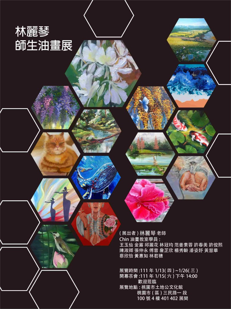 本次聯展作品來自林麗琴 老師所帶領的個人與團體共同參與,包含有Chin油畫教室及蘆山園社區大學/桃園社區大學等 休閒油畫班,一群熱愛繪畫藝術的學員共同展出,大家來自各行各業,在閒暇之餘藉由畫畫充實自我生活,不忘追求自己的夢想,藉此展出肯定自我也希望讓更多喜愛繪畫藝術的朋友們產生共鳴,進而提倡市民參與優質休閒藝術活動,並藉此成果展讓學員之間有更多的互動與交流。