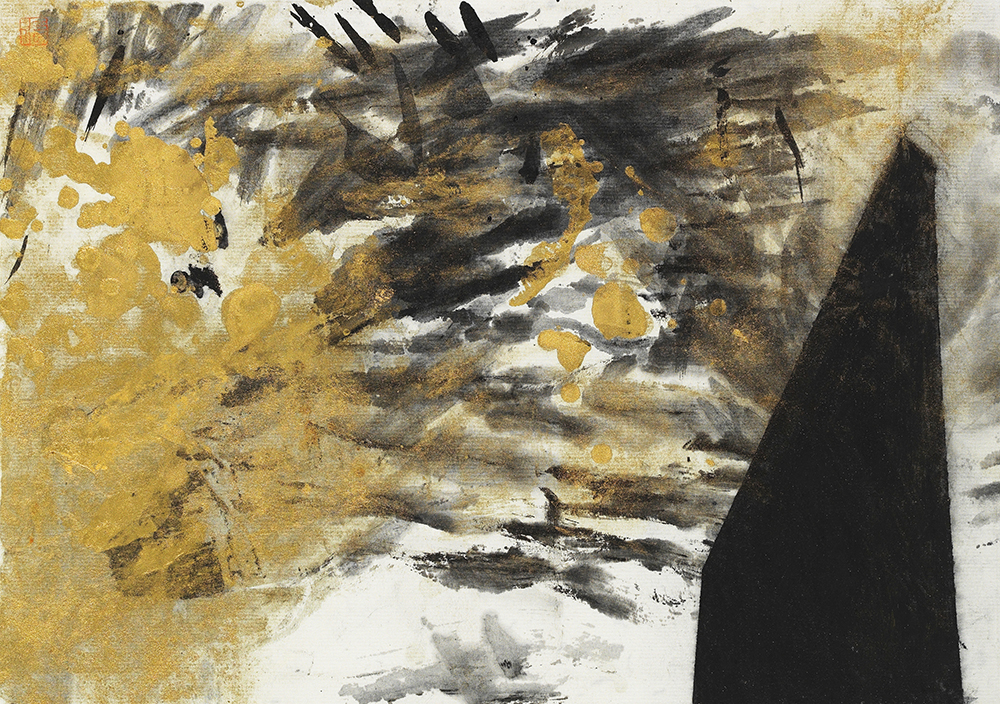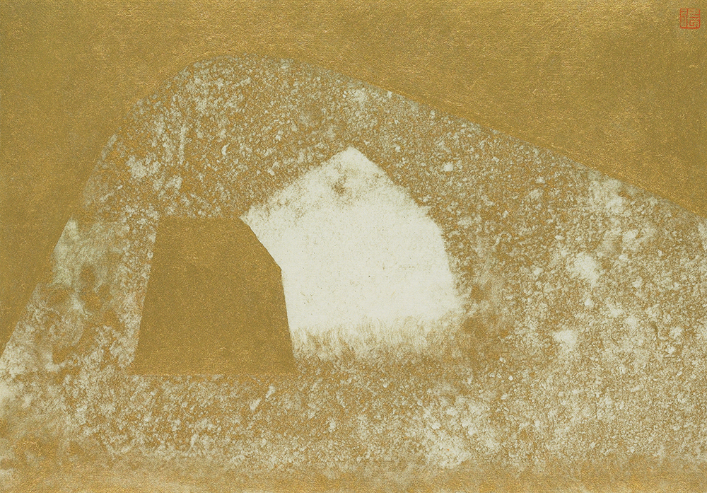 其三,金色是我這幾年慣用的顏色,我用金色的建築物與金色的背景構成全部畫面。在我看來,”金色”在某種程度上意指為時間,它雖然有”浮華”和 “虛幻”的傾向,而在人們的理解中,它又指向”永恆”與 “堅固”,充滿矛盾的隱喻。就像我和”她”(作品) 相處的短暫與永恆,無須言語,只要透過眼神的交流,彼此都能感受得到,一份別人無法干涉而深刻與超越的愛。”金色”代表著我們在現實生活裡,時間中存留了一份遺憾,所以愛才能回憶。
