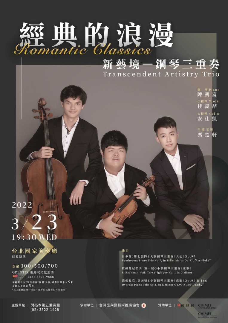 2022年,經過時間的洗禮與老師們的諄諄教誨,三位演出者將帶來貝多芬、拉赫曼尼諾夫與德佛札克的經典鋼琴三重奏曲目,期望帶給觀眾更成熟且完美的樂音!