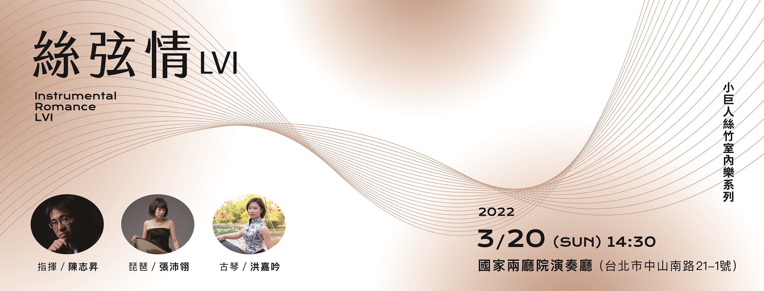 演出者: 指揮/陳志昇 琵琶/張沛翎 古琴/洪嘉吟 演出/小巨人絲竹樂團、天鼓擊樂團