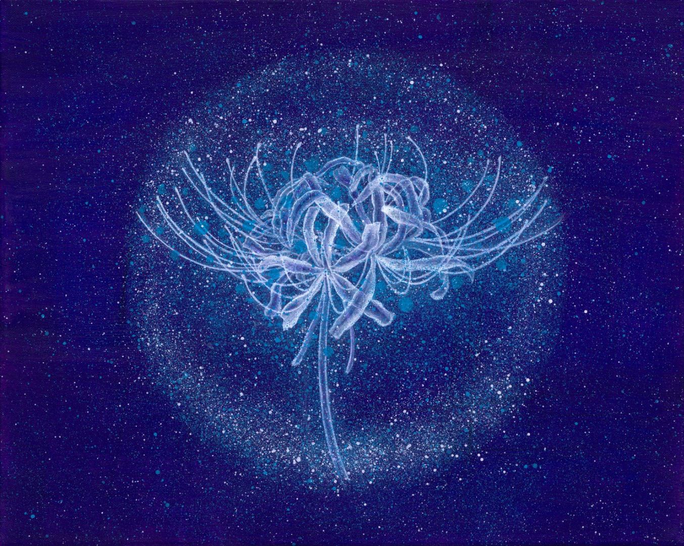 作品以太空、宇宙為主題,融入個人體悟與神秘學的探索,靜謐的作品散發平穩、溫柔、療癒的力量。