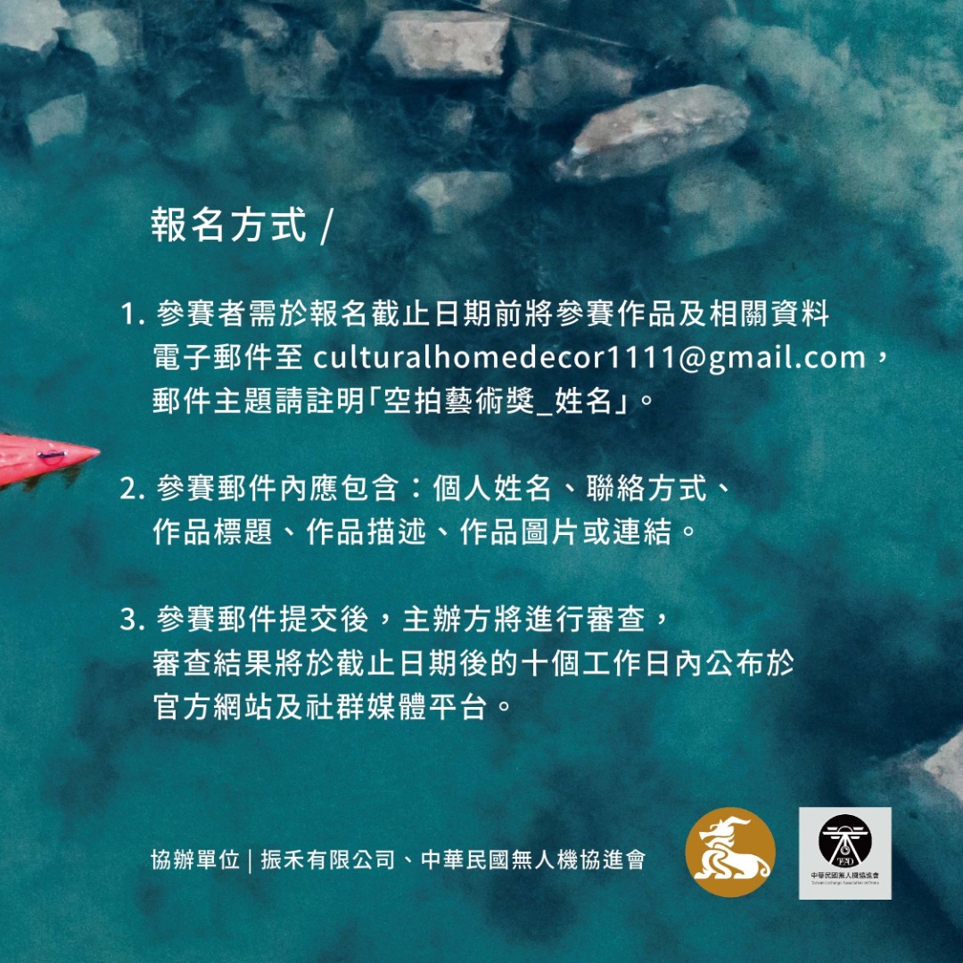 2. 參賽作品須採用空拍攝影技術,並以視覺藝術形式呈現,包括但不限於攝影、錄像等媒介。