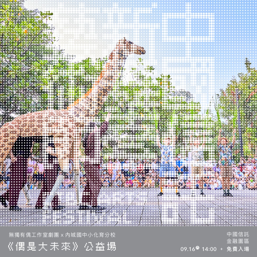 2023中國信託新舞臺藝術以「未來到劇場」為題,精選國內外當代跨界節目,探討人類面對科技、疾病、環境的當下與未來;《偶是大未來》公益場緊扣環境生態議題,我們讓劇場橫跨中國信託金融園區和三重世貿公園——綠意盎然蕨類叢林、枝影扶疏的木棧道、人氣爆棚的遊戲場……偶戲處處現蹤,舞臺無所不在。