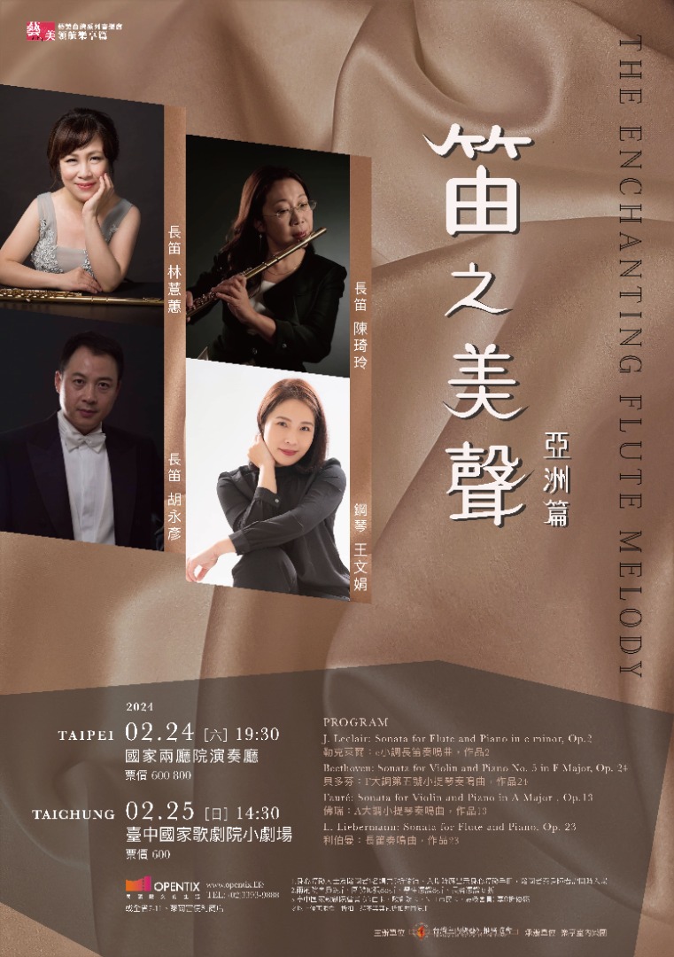 台灣長笛家林薏蕙特別邀請留學瑞士的長笛家陳琦玲與留學英國的長笛家胡永彥來台演出。陳琦玲創辦中國尼可萊國際長笛比賽(廣州國際長笛比賽),胡永彥創辦香港國際長笛比賽,三位傑出華人長笛家對於當地的貢獻功不可沒。擁有無數國際評審與交流經驗的三人將帶來多首長笛的經典曲目,引領觀眾進入千變萬化的長笛世界,透過演奏家精湛的技巧詮釋優美動人的樂曲,截然不同的演奏風格必能帶給觀眾豐富多元的聽覺饗宴。