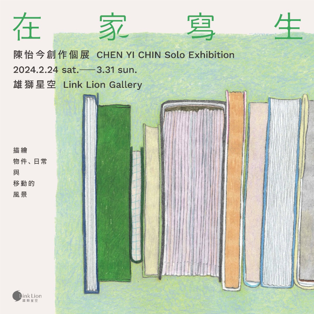 展覽名稱「在家寫生」四個字各別來看,包含了實體空間的「家」、移動軌跡的「寫生」、以及透過繪畫連結了「內心」與「戶外」虛實場域跨度上的對話。步伐移動與五感觀察,將眼前所見的生活風景描繪於紙上,反覆堆疊外出與在家兩種時間狀態交會後的結果。