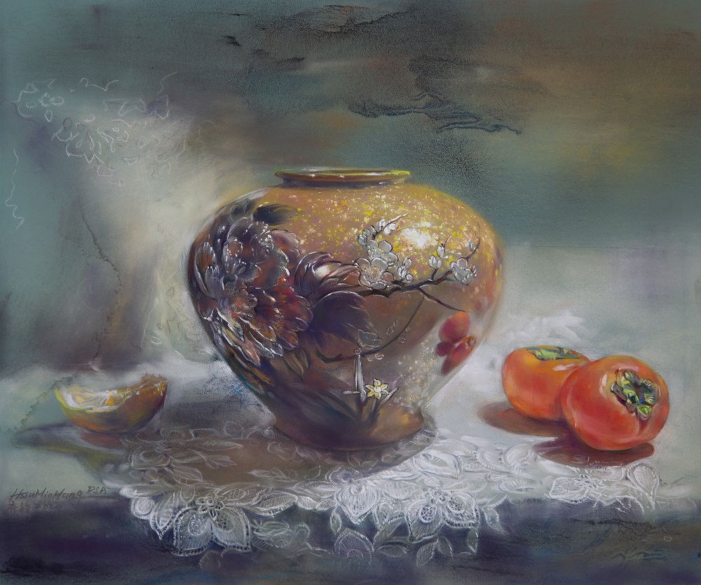洪秀敏老師本次展出的40餘件作品,首次嘗試讓水晶成為筆觸,虛實相生,主題豐富內容繽紛,創作形態多元。無論是山林海景、動物飛禽及生活靜物,都是她汲取日常所見所感,試著掌握粉彩畫清新優雅與溫暖容易親近的特質,讓作品凸顯表現技法的高超寫實力。這是粉彩畫作中極為少見的,美國粉彩協會PSA 的冠名畫家當之無愧。