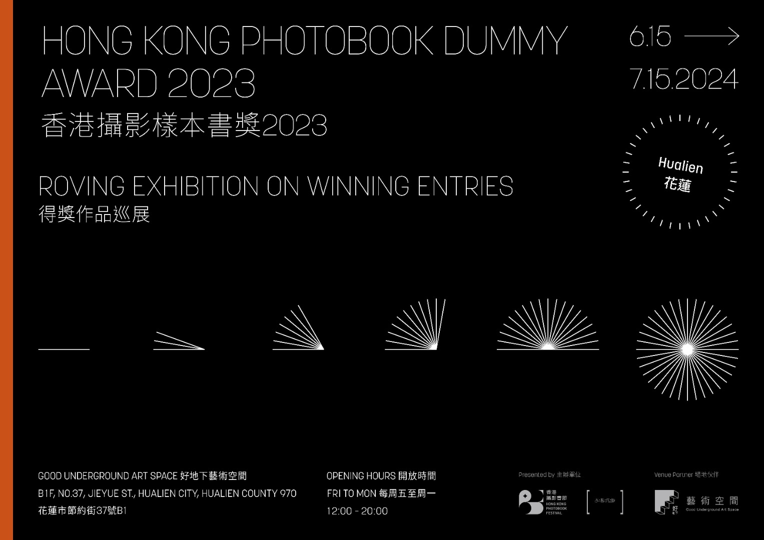 15件入圍作品從去年在香港首站展出後,在世界不同國家的城巿巡迴展出,先後到過意大利的羅馬、荷蘭的馬斯垂克、丹麥的奧胡斯、印度的新德里、印尼的雅加達等地。很高興由6/15起,於花蓮的好地下藝術空間展示至7/15,歡迎對攝影書有興趣的人士蒞臨翻閱!