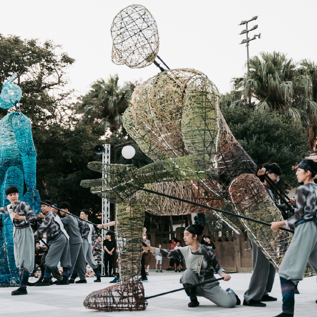 山人大偶象徵自然與土地的疲憊與沉睡,在眾人呼喚聲中,山之靈甦醒起身,吸引群鳥環繞,生機無限,但不久後,鳥群飛離,徒留山人沉浸在孤獨與思考中。這時,水流從遠方引來海人大偶,象徵水與生命的海人朝山人奔去,激起片片水花,滋潤與生命的力量終於打開山人心防,山水巨偶緊擁、共舞,彷彿自然界和諧共生,所有生命共鳴慶祝。