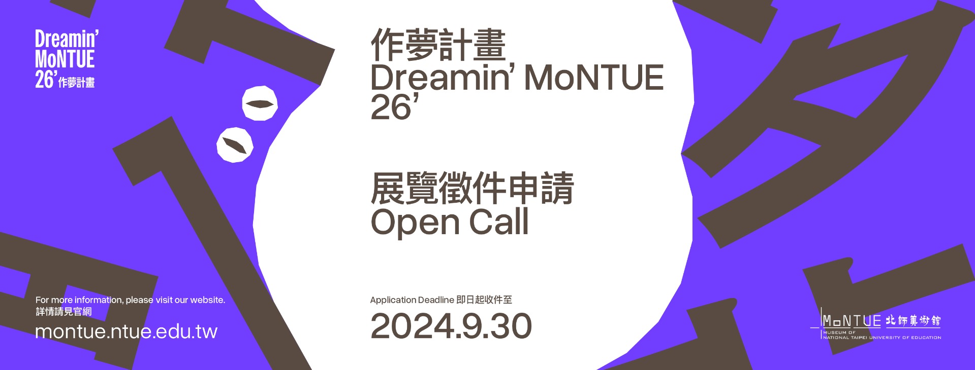 Just fill out the application form and prepare your materials, then send them to the MoNTUE submission email montue.opencall@gmail.com by 23:59 on September 30, 2024 (Monday). Selected individuals or groups will receive a production fee of NTD 1,000,000 for their proposed project, and be given the exhibition spaces of the MoNTUE to work on. And of course, you’ll have the support from our museum team throughout the process of project-making 💪
