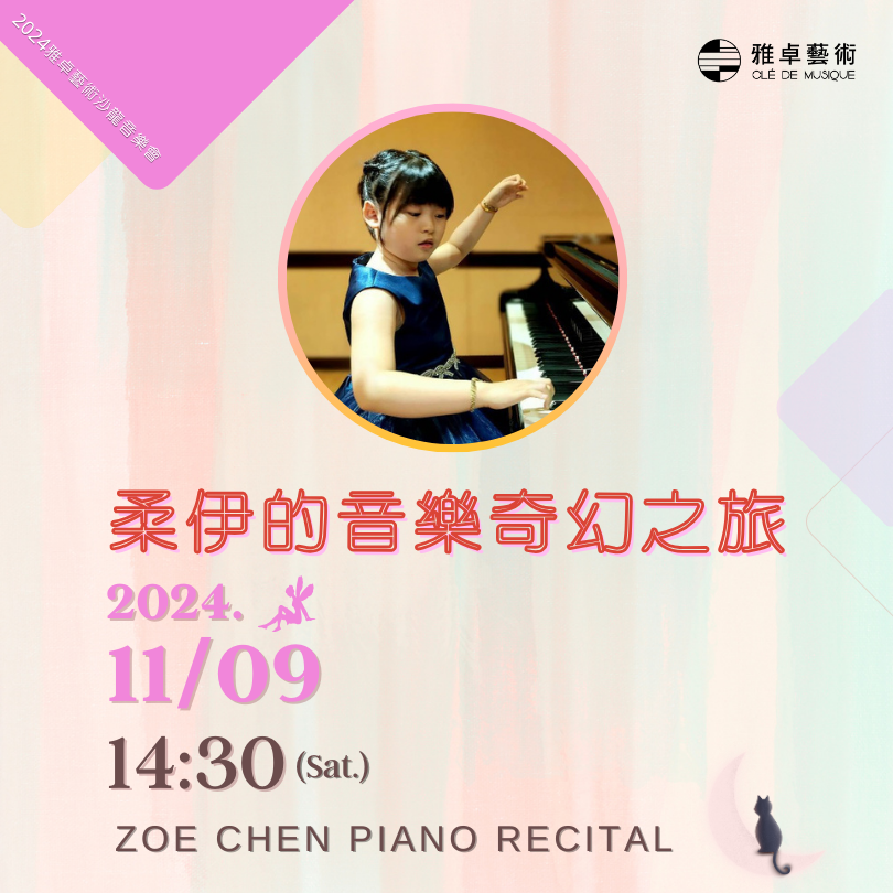 柔伊三歲開始接觸鋼琴,對於音樂的熱忱和天賦,踏上這條音樂的旅程,至今九歲,參加數十場的音樂大賽及各類音樂發表會。