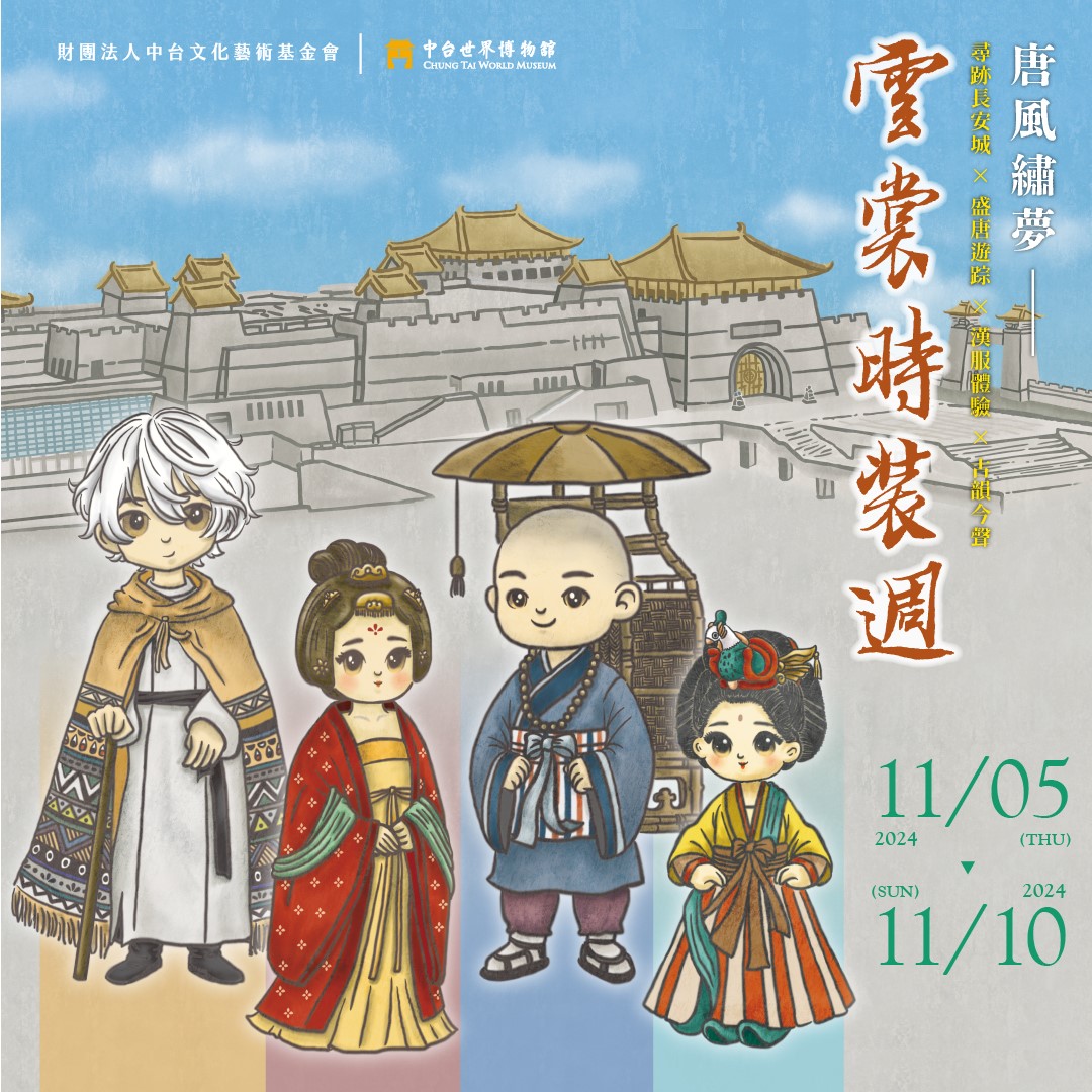 活動現場設有漢服體驗區,讓您著上雍容華美的唐代服飾,宛如置身古今交會之境。此外,中台世界博物館除了外觀宛如唐代長安城,展廳內更設置主題情境區,邀請您一同記錄這場盛唐之旅。